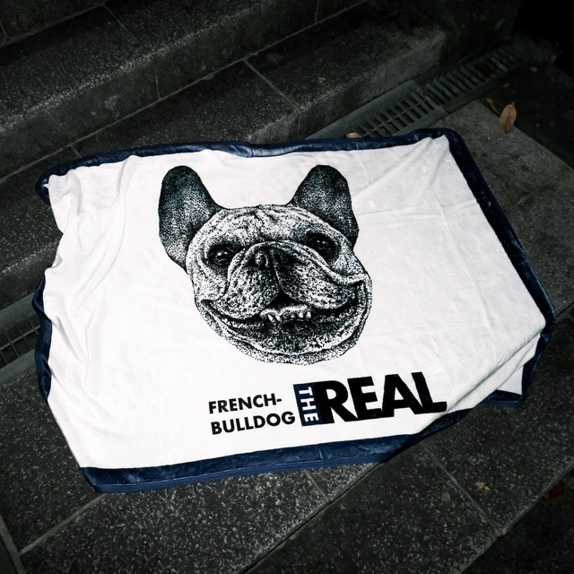 FRENCH BULLDOG THE REAL(フレブルザリアル)が手がける、スーパービッグなブランケット。 サイズは「W1400mm × H1000mm」の超大判。 (つまり横の長さは1.4メートル) フレンチブルドッグはもちろんのこと、オーナーさんもすっぽり包んでくれます。 フレンチブルドッグの就寝時やお出かけに、オーナーさんの寒さ対策に。 ソファーにかけてリビングのアクセントにするのもGOOD。 この冬たった1枚で、大活躍してくれます。 イラストは、THE YELLOW MONKEY 25thのグッズイラストや、下北ミカンの壁画などを手がける、絵描きのunomori(ウノモリ)さんが担当。 世界的に大人気のフレンチブルドッグ「TORUS(トーラス)」をモデルに、点描画で仕上げていただきました。 ---------- サイズ:W1400mm × H1000mm 素材:ポリエステル100% 縁の色:ダークブルー ----------